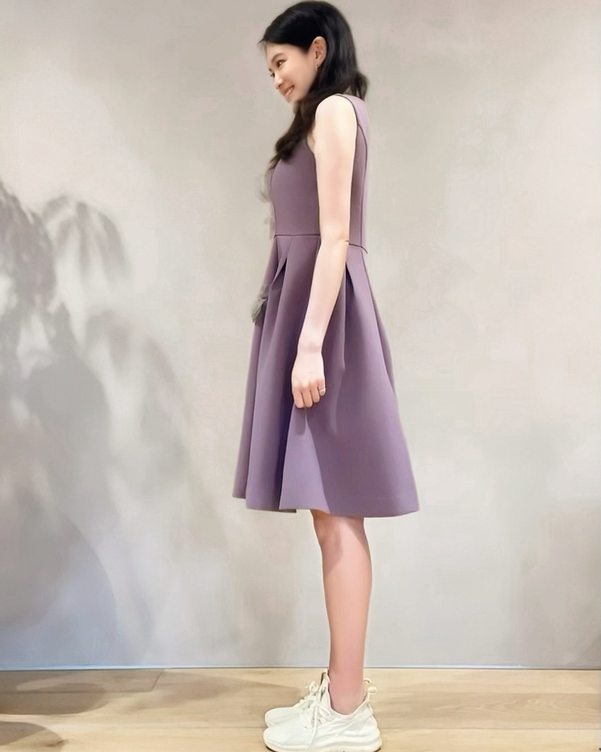裏地付きで透け感を気にせず着用でき、スニーカーを合わせれば、少しカジュアルなシーンにも活躍します。