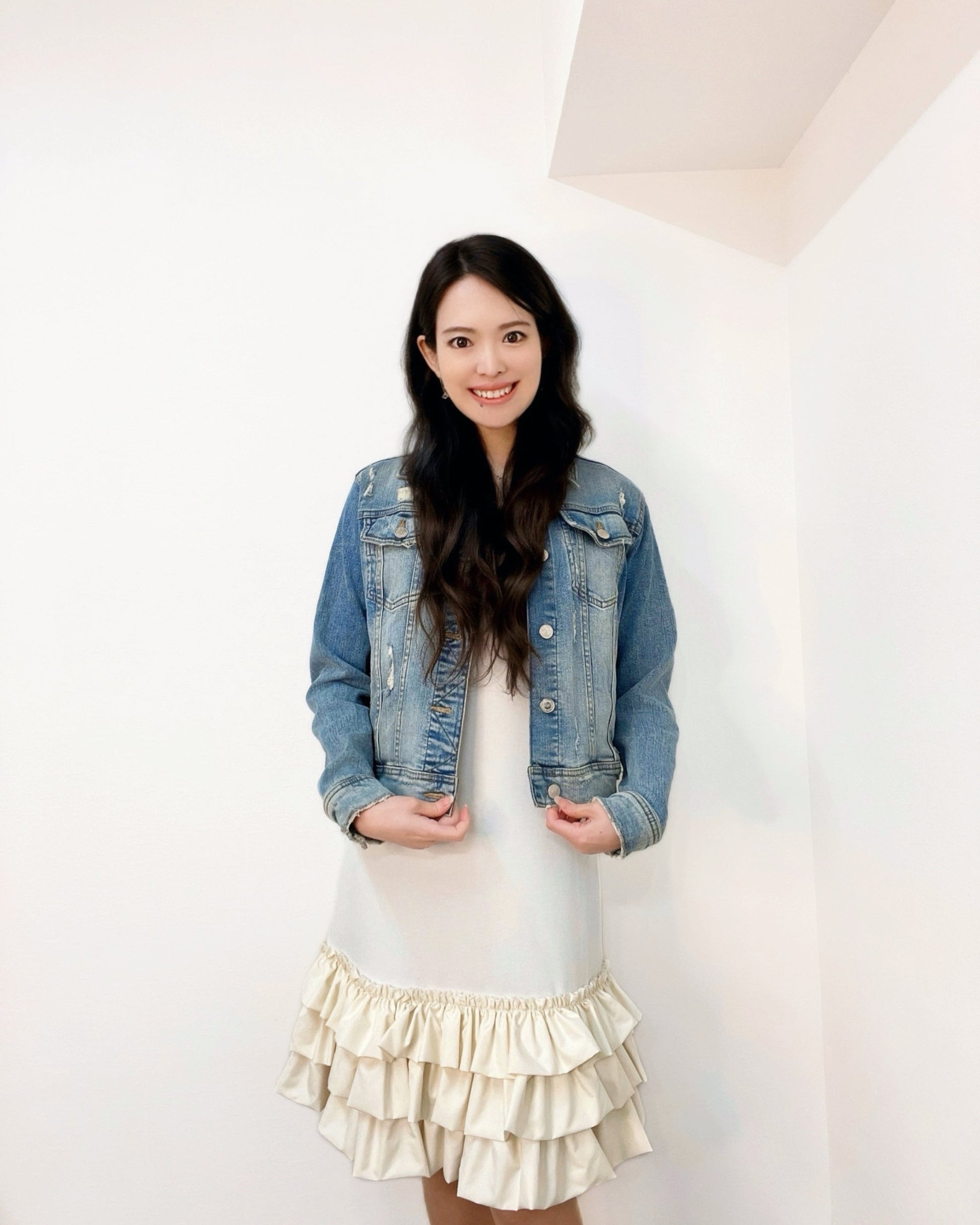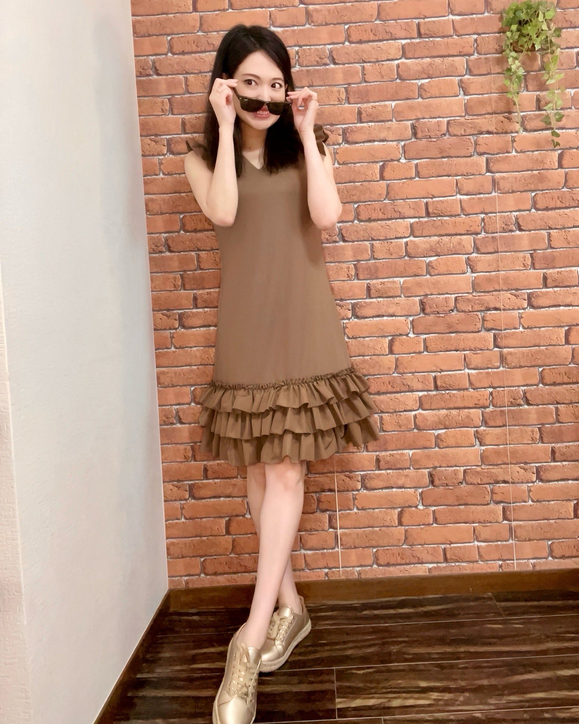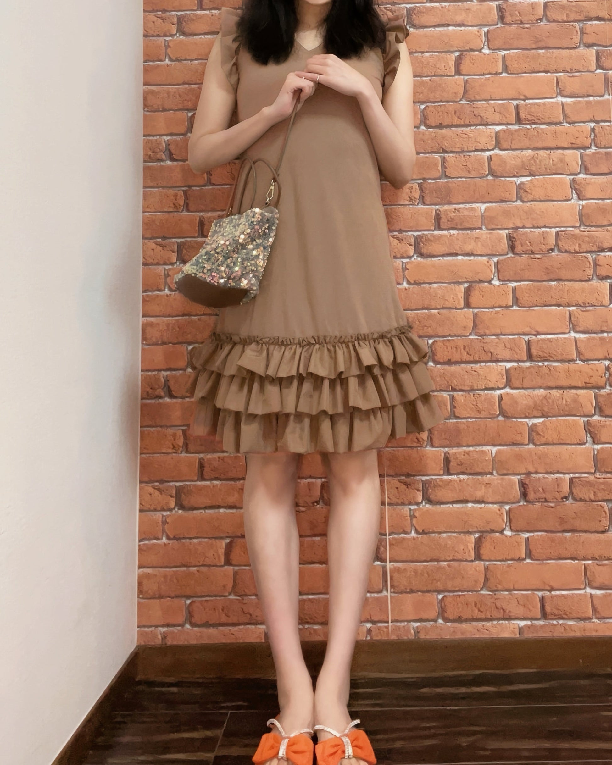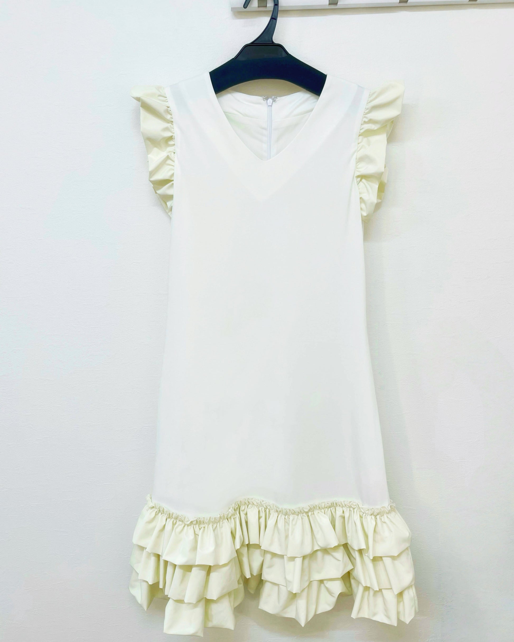 袖口と裾にあしらったフリルが、フェミニンで可愛らしい雰囲気を演出します。